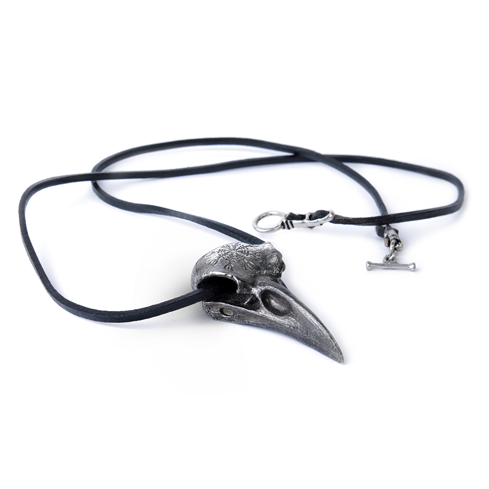 Подвеска выполнена в форме черепа ворона, украшенного изображением Шлем ужаса. Этот символ, также известный как "Агисхьяльм", является символом Исландии и, как верили древние, его обладателю присуща могущественная сила и дар вселять страх в сердца врагов.