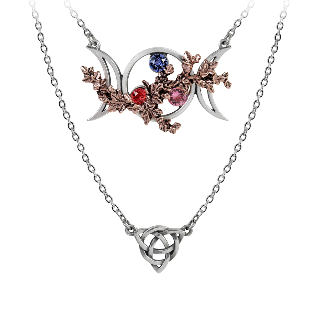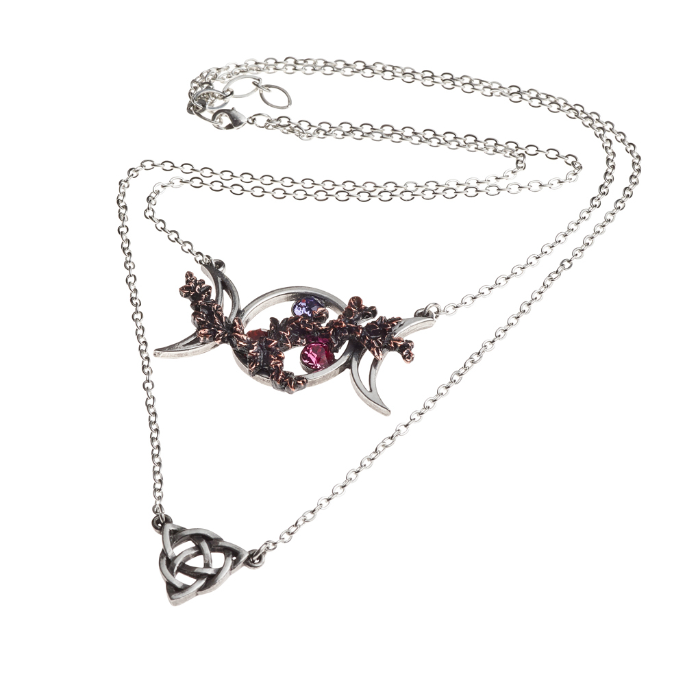 Подвеска в форме богини Викки, воплощенной в трех фазах Луны, олицетворяет триаду основ жизни: Дева для юности и новых начал, Мать для зрелости, плодородия и сексуальности, и Старуха для мудрости, спокойствия и завершения.