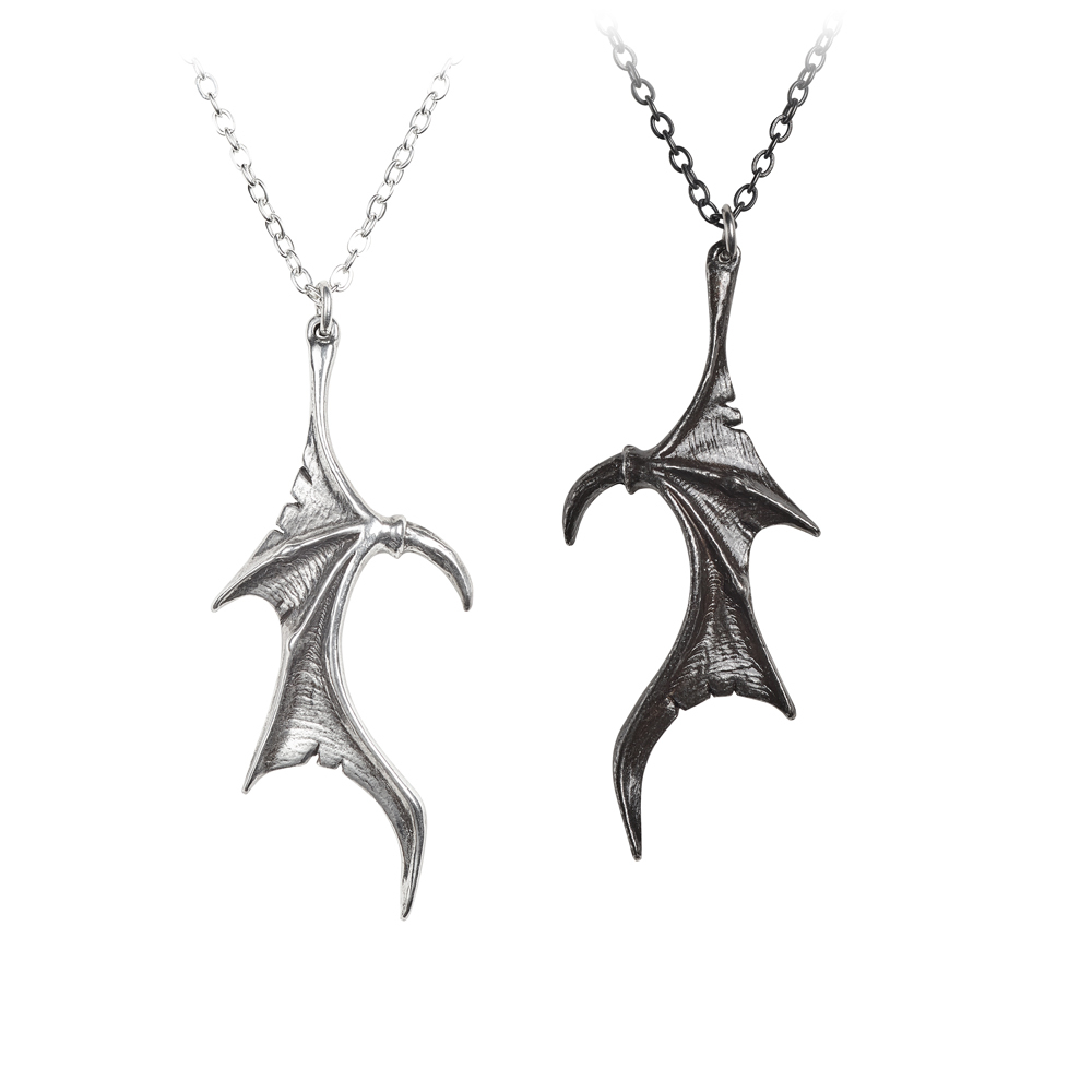 Парный кулон Крылья Дракона для двух близких сердец. Скрепляясь образуют форму сердца в виде крыльев дракона. Изделие изготовлено в Великобритании. Идеи и дизайн изделия разработаны художниками бренда The Alchemy Gothic и защищены авторским правом. Вес и размеры (приблизительно): H: 67 мм (2,64 дюйма) W: 57 мм (2,24 дюйма) D: 6 мм (0,24 дюйма) Вес: 27 г (0,95 унции)