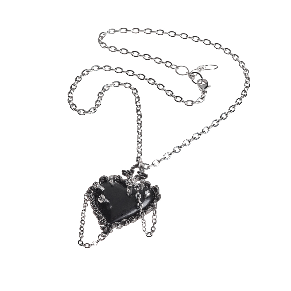 Подвеска Сердце Ведьмы в форме черного сердца в красивом орнаменте пронзенного гвоздями, символизирует предательство. Один из гвоздей вынимается или может быть помещен в отверстие. Изделие изготовлено в Великобритании. Идеи и дизайн изделия разработаны художниками бренда The Alchemy Gothic и защищены авторским правом. Вес и размеры (приблизительно): H: 46 мм (1,81 дюйма) W: 36 мм (1,42 дюйма) D: 15 мм (0,59 дюйма) Вес: 32 г (1,13 унции)