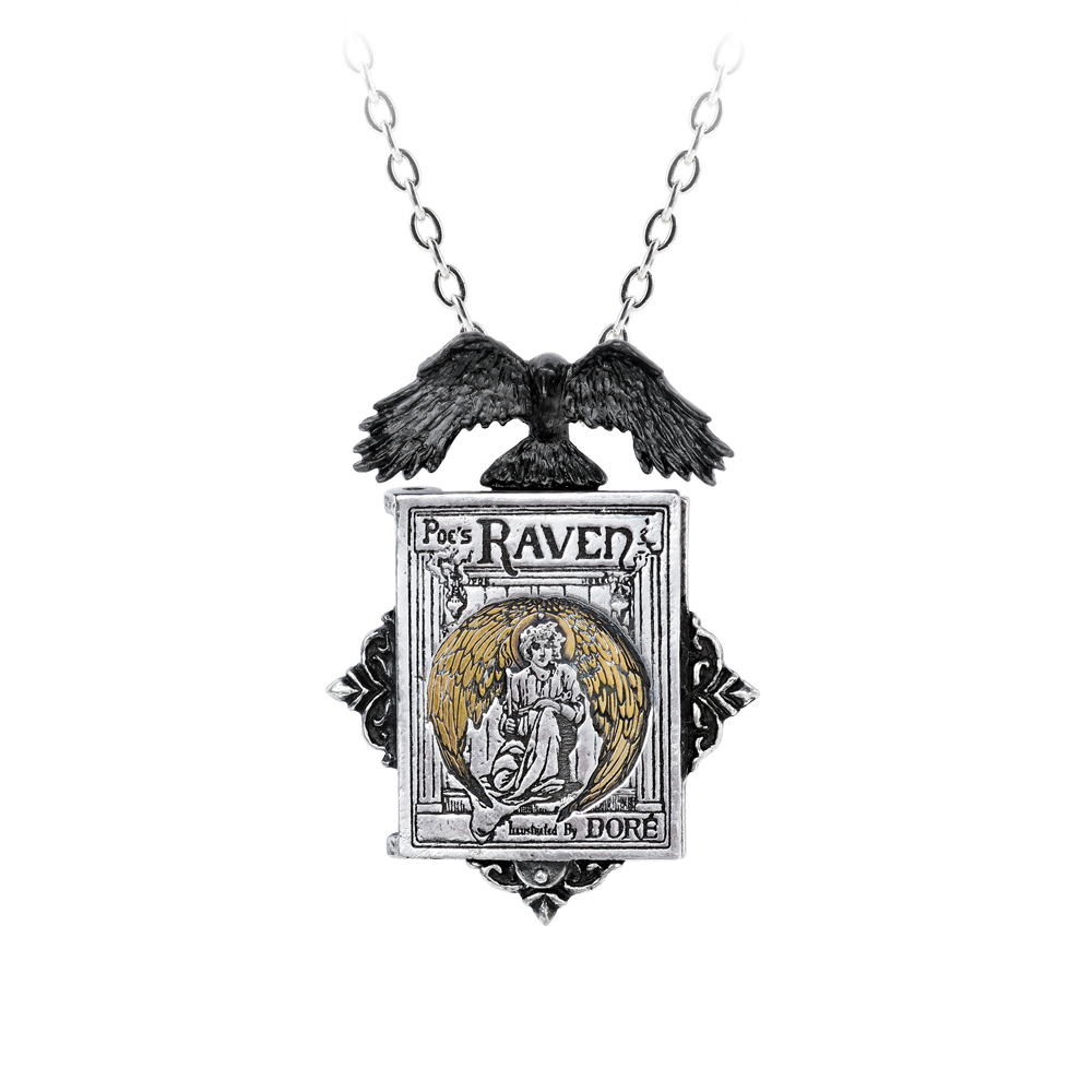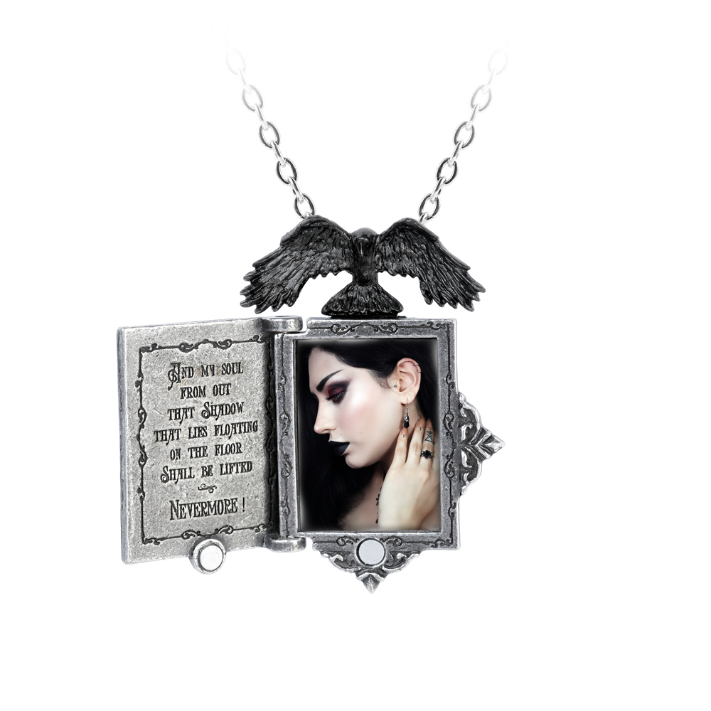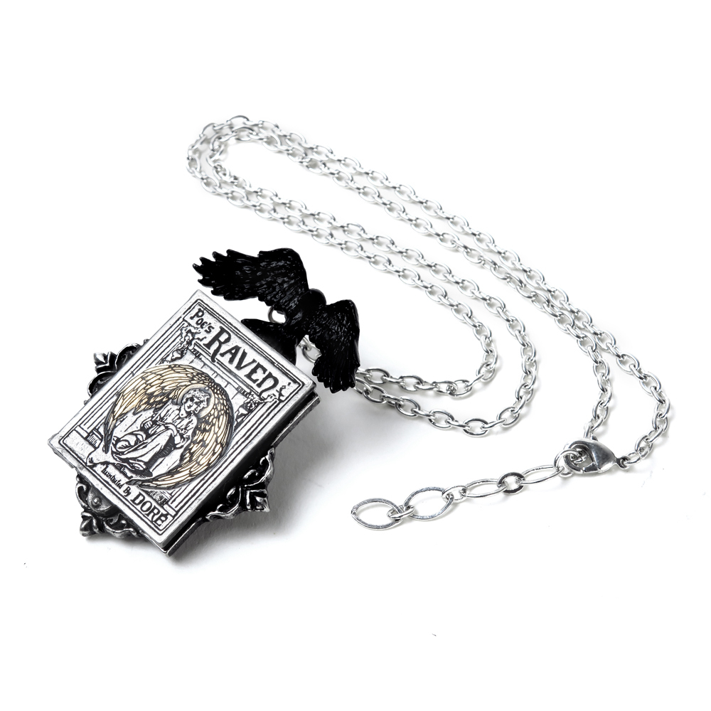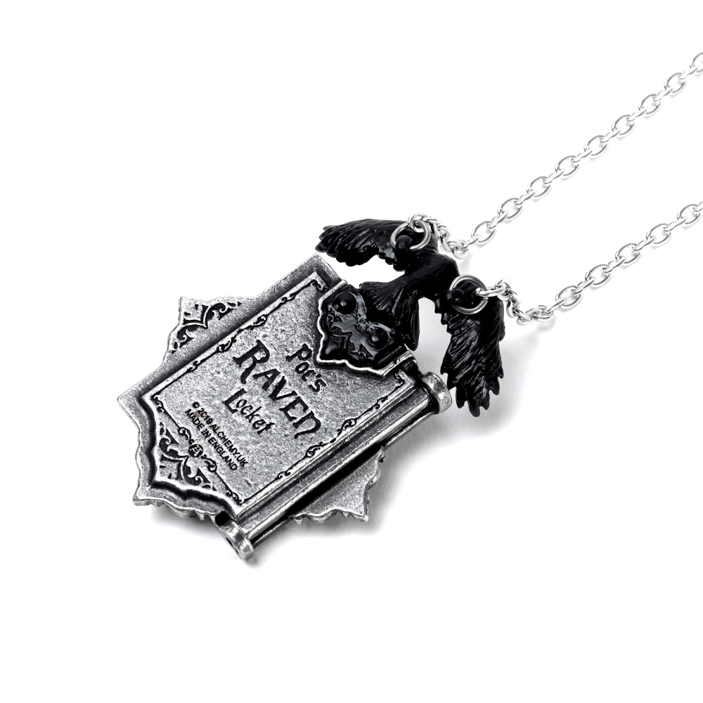 Медальон вформе обложки первого издания книги Эдгара Аллана По "Ворон", дополнена черным вороном. Обратите вашу любовь к поэзии "По". Медальон из пьютера, имитирующий оригинальную обложку книги "Ворон По".
