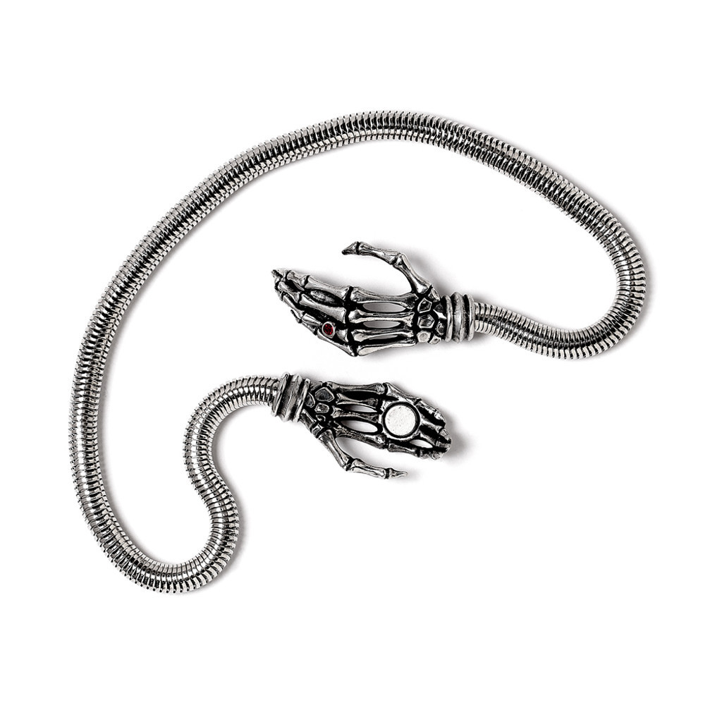 ВОЗЬМИ МЕНЯ С СОБОЙ. Смертельная преданность, вера и доверие должны быть выдержаны, чтобы следовать до самого конца. Это изысканное украшение станет экстраординарным акцентом любого наряда! Полированные руки скелета смыкаются на шее. Украшение инкрустировано красным австрийским кристаллом. Размер (приблизительно): На 18-дюймовой (46 см) 8-миллиметровой цепочке-змейке. Вес и размеры (приблизительно): H: 48 мм W: 53 мм D: 12 мм Вес: 93 г. Упаковано в черный мешочек из органзы, в который вложены гарантия Alchemy и инструкции по уходу. Разработано и изготовлено вручную в Англии из тонкого английского пьютера.