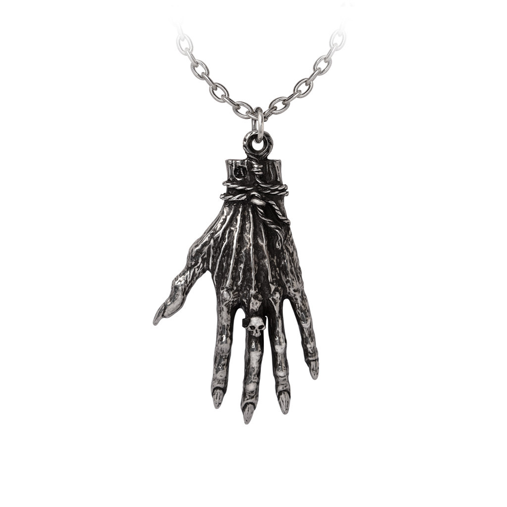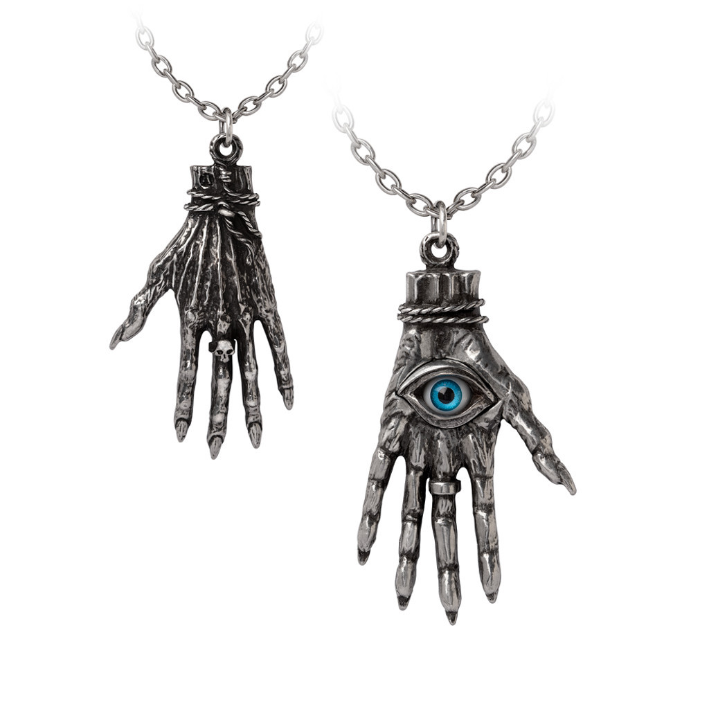 Отрубленная и мумифицированная рука казненного преступника, используемая для оказания помощи новому преступнику в его тайной деятельности, вместе с защитным глазом Хамса для отражения злых угроз. Это талисман защиты. Осознает, какую тьму вы можете причинить, но обеспечивает защиту от любого дурного поступка! Цельнолитая копия руки серебряного цвета с заостренными ногтями, крошечным кольцом в виде черепа и инкрустированным синим зрачком. Вес и размеры (приблизительно): Д: 53 мм (2,09") Ш: 30 мм (1,18") В: 5 мм (0,20") Вес: 37 г (1,31 унции). (Пожалуйста, обратите внимание, что размеры украшений указаны без учета размера застежек). Упаковано в фирменный пакет Alchemy с гарантией Alchemy и инструкцией по уходу. Разработаны и изготовлены вручную в Англии из высококачественного английского пьютера.