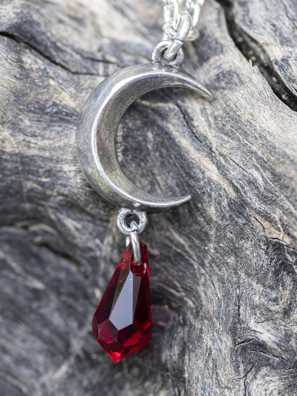 Изящный полумесяц из тончайшего английского пьютера удерживает алую каплю сверкающего кристалла австрийской огранки, словно кровь охоты, впитавшая в себя магию ночного леса и древние ритуалы выживания. Этот эффектный аксессуар станет украшением для тех, кто идёт вперёд, опираясь на свою интуицию, силу духа и первозданную энергию.