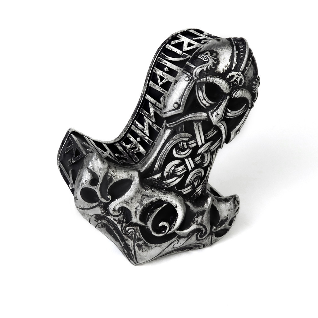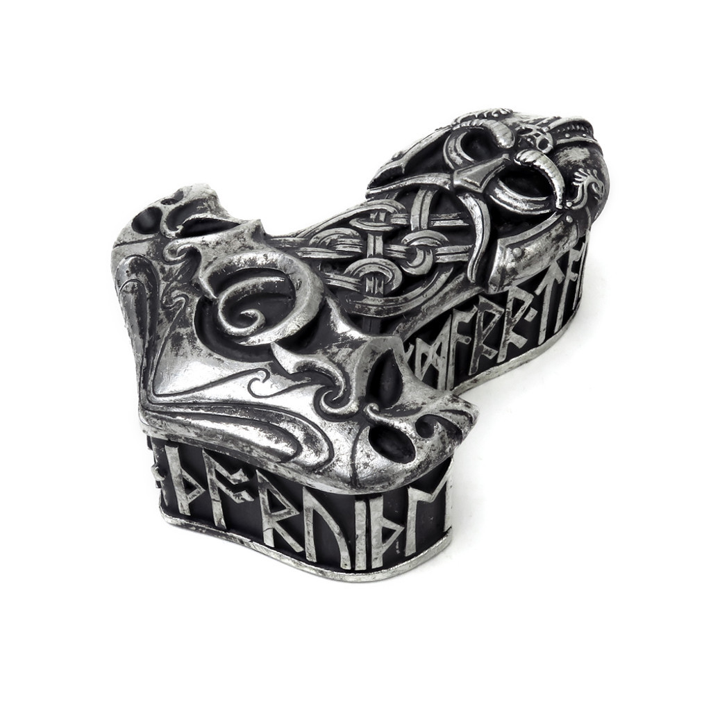 Языческий ларец под защитой бога грома, обеспечивающий силу, исцеление и плодородие. Вырезаны руны, провозглашающие "Благословение на этот молот". Приблизительные размеры: Ширина 4,13 Высота 2,36 Глубина 5,51. Материалы: полистоун.