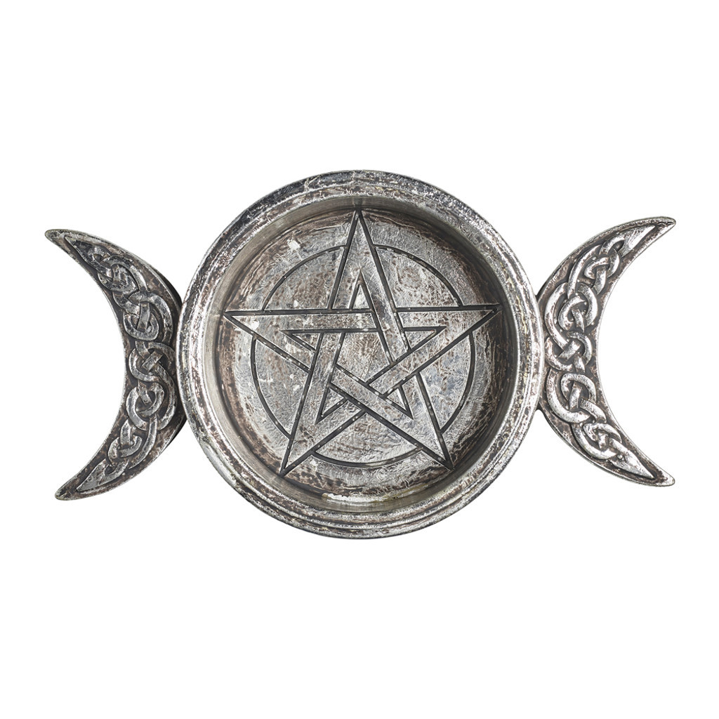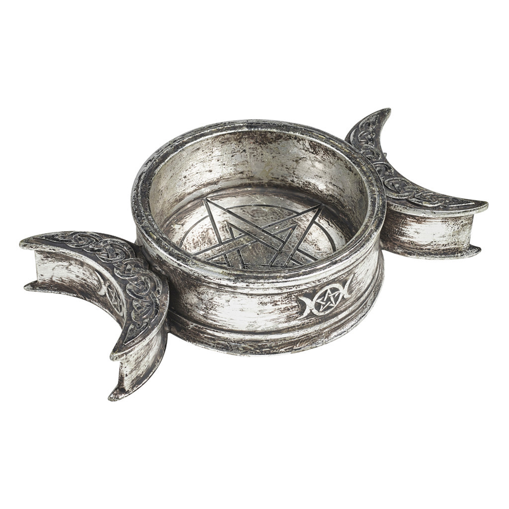 Добавьте немного магии в свой дом с помощью этого языческого подсвечника. Этот тройной лунный дизайн будет эффектно смотреться у вашего алтаря или станет прекрасным подарком для друга, любящего викканство. Освященный алтарь богини Керридвен, котел мудрости и вместилище священного пламени, за которым присматривают рогатые полумесяцы девы и старицы. Приблизительные размеры: H: 3.7cm W: 16.5cm D: 10cm Вес: 253g. Материалы: полимерная смола.